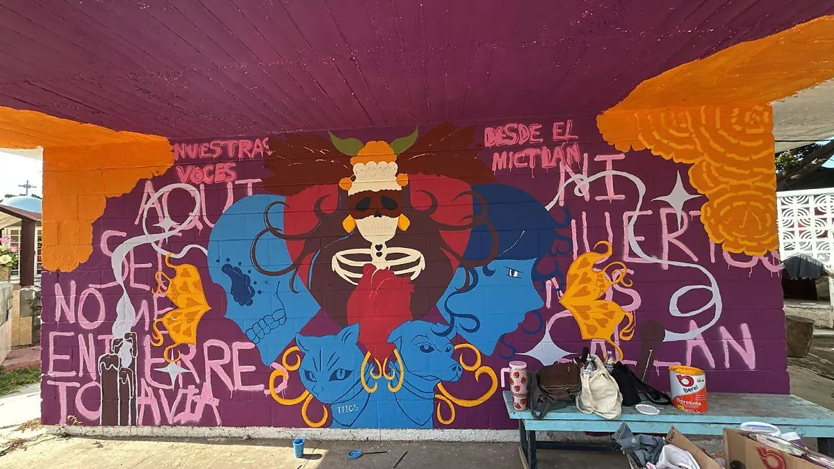 The mural was the result of a three-week workshop organized by IMJU in collaboration with the Sirenas Negras art collective. During this time, young participants explored the intersection between visual arts and Day of the Dead traditions, creating a piece rich in identity, respect, and urban expression.