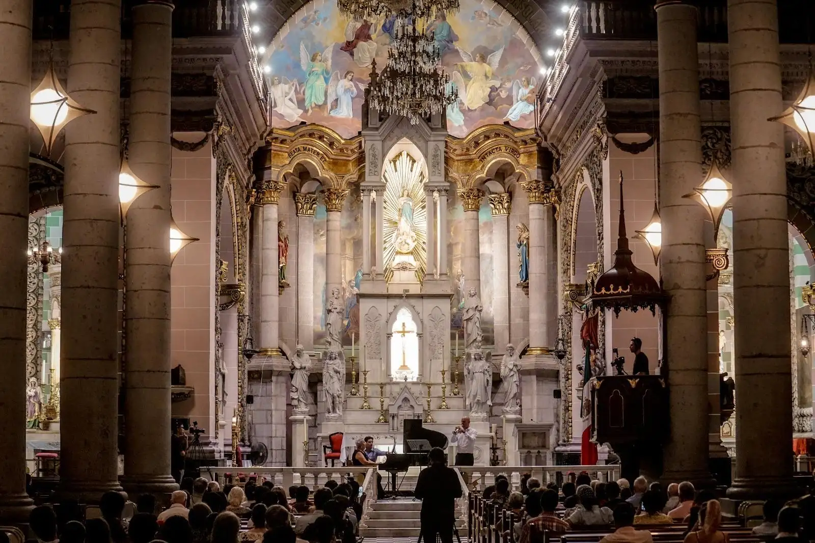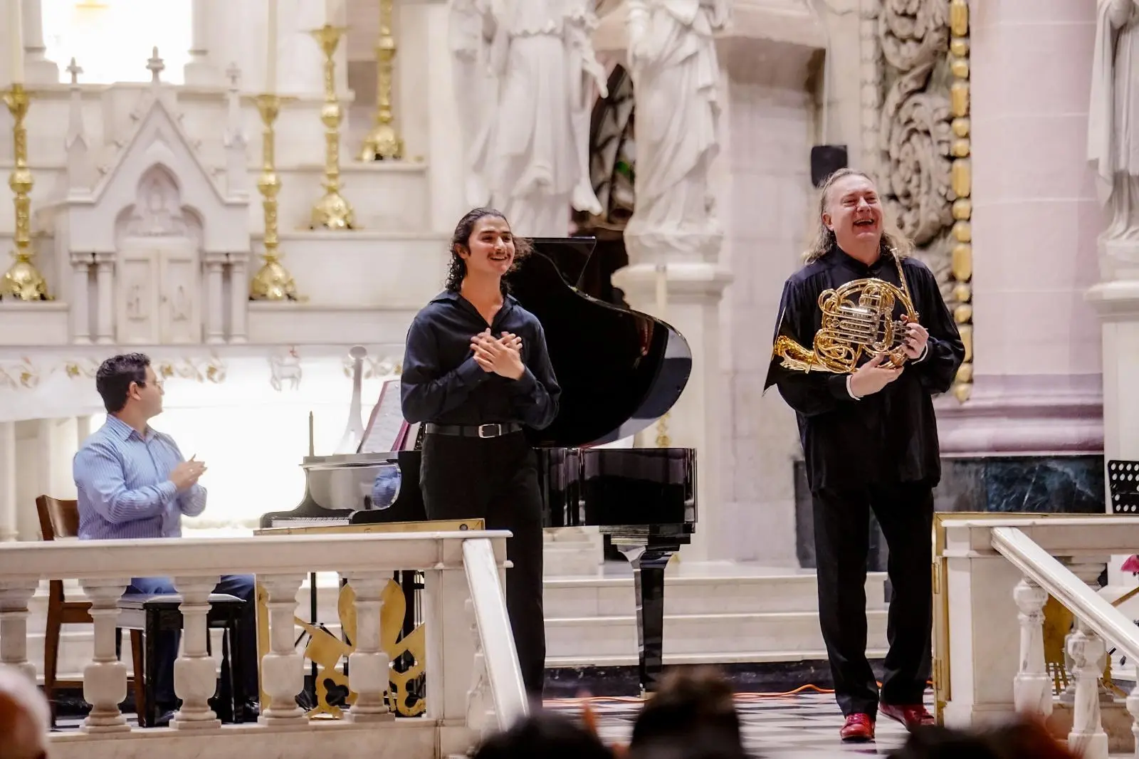 Under the golden domes of the temple, the brilliance of brass illuminated the night with a program of high artistic demand performed by Javier Rossetto (trumpet, Venezuela), Dariusz Mikulski (horn, Poland), and pianists Tanya Orlova and Elías Esparza, the latter an alumnus of the Centro Municipal de Artes of the Mazatlán Institute of Culture.